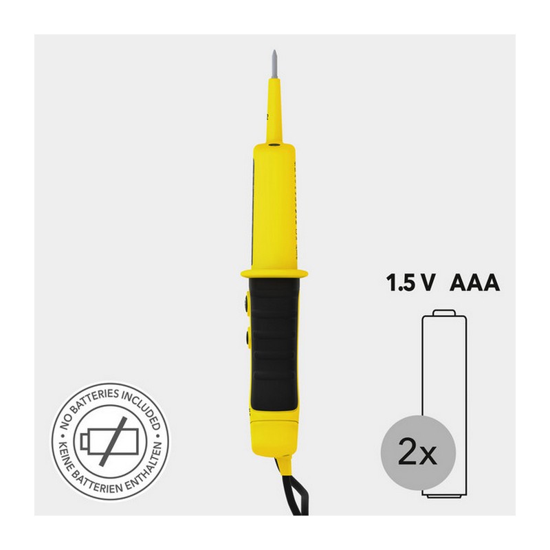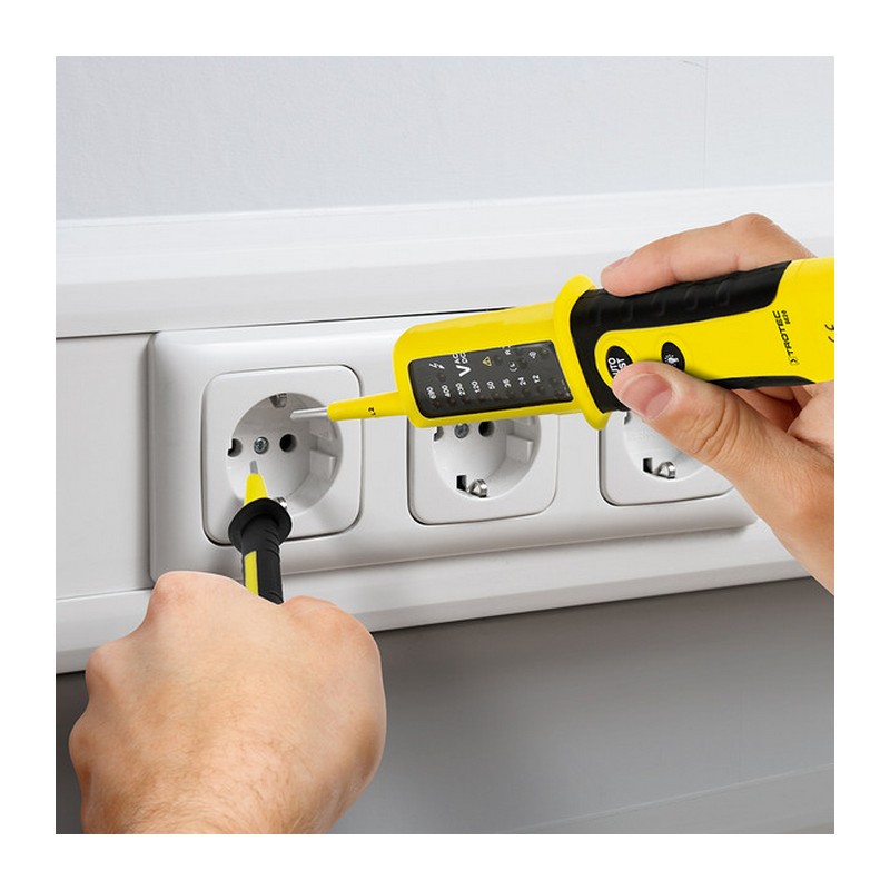 Szigorú szabványok szerint gyártva és tesztelve, számos professzionális funkcióval felszerelve, és IP64-es védettségének köszönhetően ideális még a legnehezebb mindennapi használatra is – ez a kétpólusú feszültségvizsgáló ideális mérőeszköz villanyszerelők és ambiciózus barkácsolók számára.