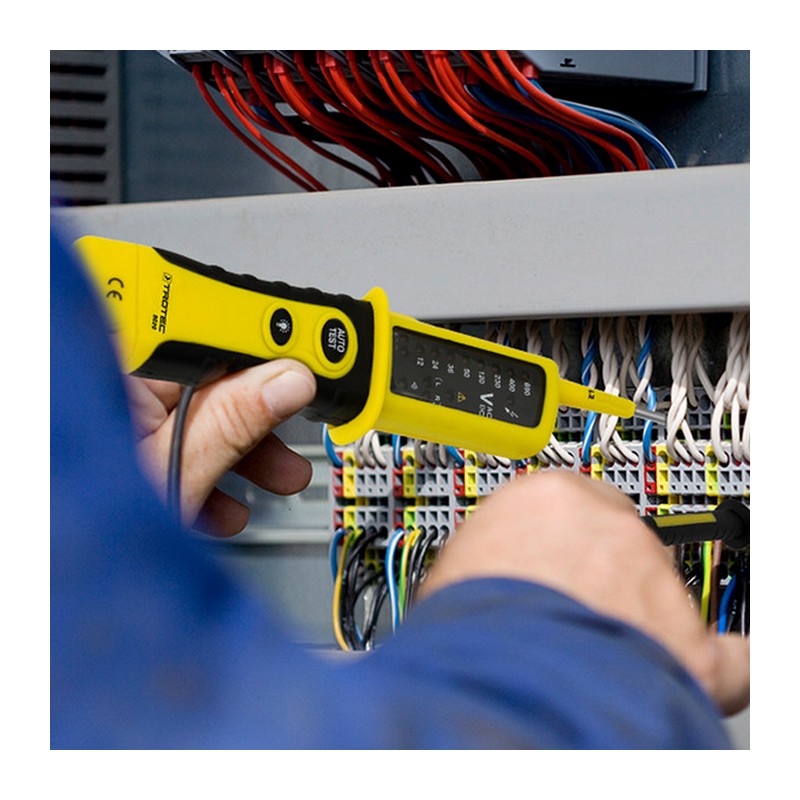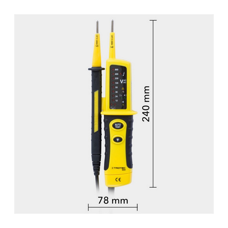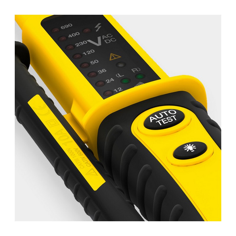 Sokoldalú kétpólusú feszültségvizsgáló DC vagy AC feszültség, polaritás és fázissorrend mérésére.