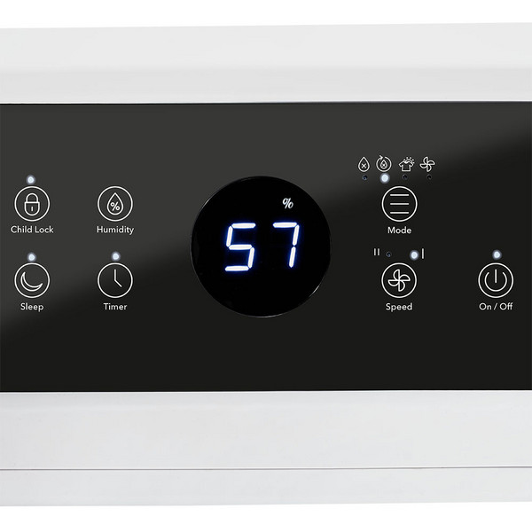 A TTK 99 HEPA páramentesítő kezelőpanelje jól áttekinthető és könnyen érthető. A digitális kijelző mutatja a helyiség relatív páratartalmának aktuális értékét, az előre beállított páratartalmat és az időzítő előre beállított óraszámát.
