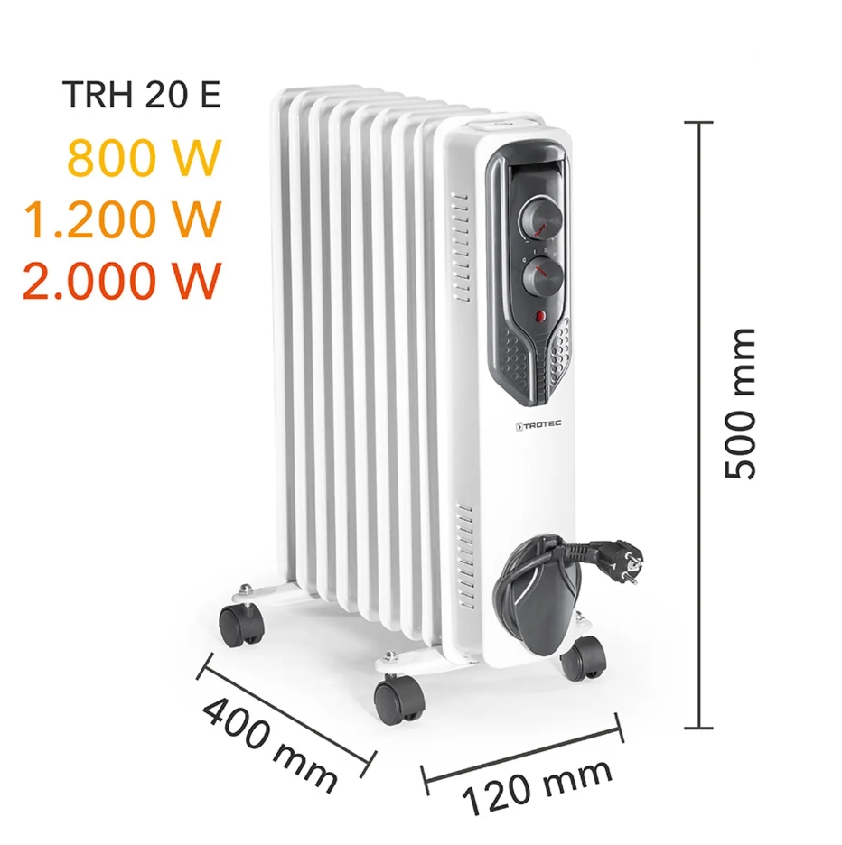 A 3 fűtési fokozatban beállítható erős és zajtalan, nagy fűtési teljesítményű TRH 20 E olajradiátor megbízható társ, például pótfűtésként hideg téli napokon, vagy garázsok, pincék átmeneti alapfűtésére is. Az olajradiátor fagyőrként is jól funkcionál, használata költséghatékony, hiszen a fokozatmentesen beállítható termosztát gondoskodik arról, hogy az energiaköltségek a takarékos, zöld sávban maradjanak.