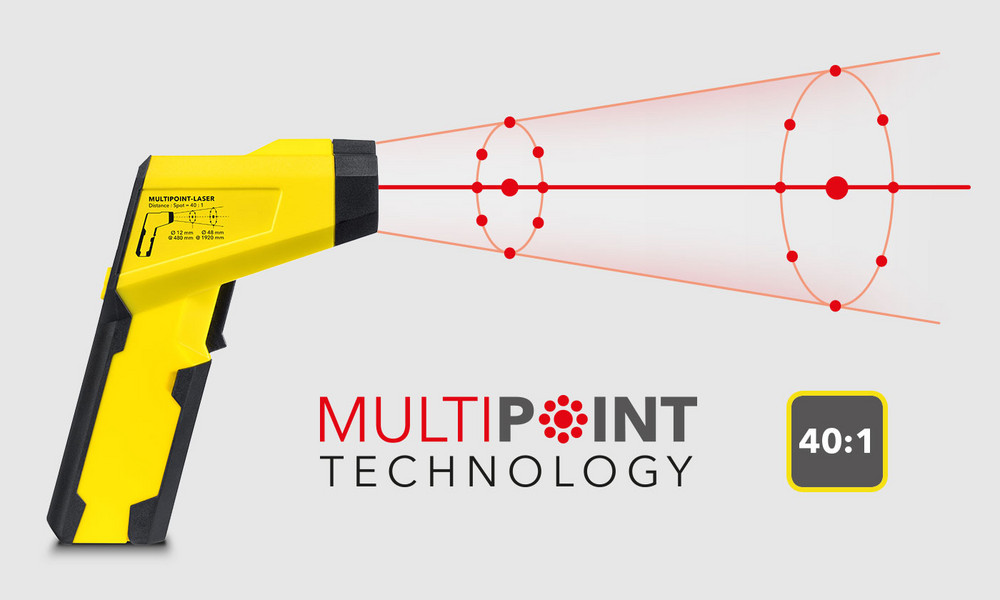 Míg egy központi céllézer jelzi a mérési pontot, további nyolc lézer vizualizálja a mérési felület szélső pontjait, ami lehetővé téve ezzel a precíz mérést a lehető legrövidebb idő alatt.
