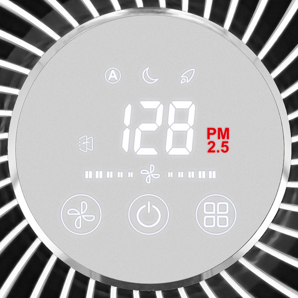 360°-os teljesen automatikus HEPA-védelem a levegőben lévő káros anyagokkal szemben, valós idős levegőminőség-méréssel