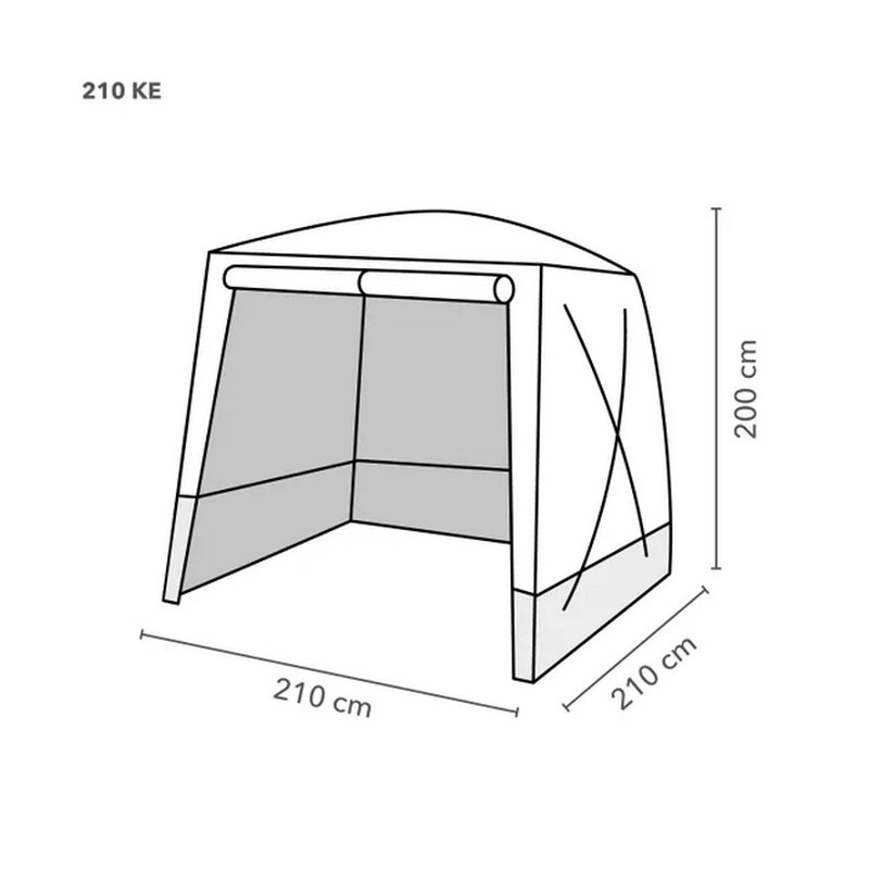 • Felállított sátor: hossz: 2,1 m x szélesség: 2,1 m x magasság: 2,00 m